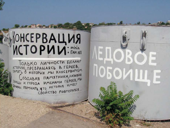 Гамлет Зиньковский, Роман Минин. Консервация истории. 2010. Стрит-арт-проект в рамках II фестиваля медиа и перформансов «Балаклавская одиссея». Севастополь, Украина— Что опаснее всего для современного искусства — отсутствие денег, драйва, новых смыслов?