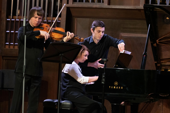 Но шутки шутками, а национальные мотивы, любовно найденные и почищенные для этой программы, в нашу эпоху постправды расцвели и заблагоухали самым невероятным образом. В Концертино (1925) Эрвина Шульхофа для флейты (Мария Алиханова), альта (Михаил Рудой) и контрабаса (Павел Степин) можно было расслышать что-то менестрельное, в фортепианной сюите (1925) Мануэля де Фальи из балета «Любовь-волшебница» (Яков Кацнельсон) — звонкий зной фламенко, в «Микрокосмосе» Бартока (авторское переложение семи пьес для двух роялей (1940), Екатерина Апекишева и Вадим Холоденко) — космос музыкальных революций второй половины XX века, а в раннем (1932) Трио Хачатуряна для кларнета (Михаил Безносов), скрипки (Айлен Притчин) и фортепиано (Андрей Гугнин) — вообще почему-то Леонида Десятникова. В двух жанровых пьесах Сулхана Цинцадзе «Хоруми» (1948) и «Сачидао» (1950) для альта (Андрей Усов) и фортепиано (Ксения Башмет) честно слышалось «национальное по форме и социалистическое по содержанию», очень качественное. В «Плаче» (2001) нашей современницы Елены Лангер для солирующей скрипки (Роман Минц) и струнного оркестра (Entre Nous под управлением Азима Каримова) — обещанный ею в аннотации ритуальный причет вокруг невесты на русской свадьбе.