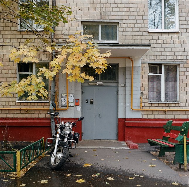 Когда мне в голову пришла мысль попытаться визуально осмыслить явление, во многом определяющее и сегодня нашу постсоветскую территорию, первый импульс был как и у любого уважающего себя русского художника — взять для местной задачи готовую форму, то есть сделать проект-типологию из композиционно одинаковых черно-белых фотографий «в стиле» Бернда и Хиллы Бехер. К счастью, это оказалось невозможно, во-первых, технически: из-за плотной застройки и зелени хрущевки было просто не снять так, чтобы весь дом влез в кадр — что с фасада, что с торца; во-вторых, серия черно-белых картинок лишь подчеркнула бы господствующее у нас представление о хрущевках как о бесконечном множестве одинаковых промышленных изделий, лишенных каких-либо индивидуальных и интересных для анализа черт. Так возникла идея снимать на цвет и не дома целиком, а только подъезды — элементы здания, с одной стороны, нагруженные символически, а с другой — предъявляющие зрителю в концентрированном виде результат той самой «привязки к местности». Мне кажется, в итоге удалось сделать зримыми детали и следы подлинной жизни и культуры, заслуживающие по меньшей мере внимания. Я имею в виду все эти неровные швы между панелями и криво сложенные кирпичи, самодельные крыльца и двери, коврики, следы ремонтов, переделок, замазок и подкрасок, клумбы из покрышек или вылепленные из цемента, разноцветные скамейки и урны (у каждого ЖЭКа свои цветовые пристрастия), решетки на окнах и т.п. Так множество, казалось бы, одинаковых элементов одинаковых построек при пристальном рассмотрении сопоставленных друг с другом изображений приобретает черты индивидуальности и даже рукотворности — парадоксальным образом и подобно тому, как из стандартизированного жилья, буквально из этих подъездов, вышел массовый советский индивидуалист.
