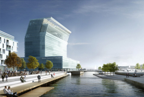 Многоэтажное здание, отделанное стеклянными панелями с разной степенью прозрачности и разными углами наклона, будет расположено на набережной в интенсивно застраивающемся районе Бьорвика, неподалеку от Оперного театра Осло. Общая площадь помещений музея составит 16 тысяч кв.м.