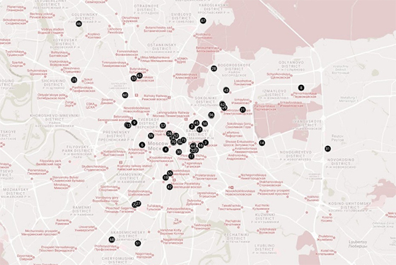 Маршрут по Москве каждый составляет сам. На карте Art-Space-Hopping можно найти исторические мастерские на Вавилова, коллажную мастерскую Олега Бородина и керамическую студию Анастасии Сухаревой-Морозовой на Покровке, печатную мастерскую на Чистых прудах Ferrum Printlab, живопись, графику, гравюры, керамику и скульптуру в кластере мастерских художников на улице Вавилова и многое другое.