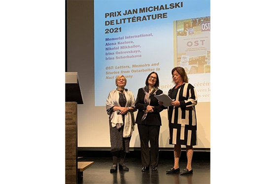 23 ноября состоялось вручение премии Яна Михальски по литературе за 2021 год. Она присуждена Международному Мемориалу*, Алене Козловой, Николаю Михайлову, Ирине Островской и Ирине Щербаковой за коллективную работу над книгой «Знак не сотрется. Судьбы остарбайтеров в письмах, воспоминаниях и устных рассказах» (М., 2016; второе издание – 2019). Английский перевод – OST: Letters, Memoirs and Stories from Ostarbeiter in Nazi Germany (Granta, 2021).