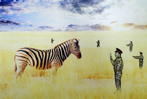Айдар Бекчинтаев. Без названия («Полицейские под прикрытием зачитывают зебре её права, которых не особенно и много»). 2015 (фрагмент)© Айдар Бекчинтаев